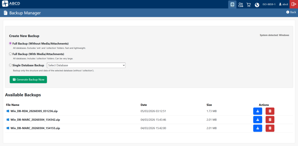 bases/wrk/backupsfolder, separate from ISO files, avoiding confusion. - Portability: The system automatically detects the Operating System and adds prefixes (