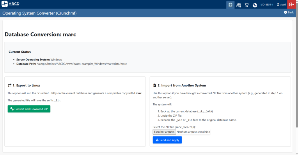 Migrating databases between Windows and Linux servers has always been a point of attention due to binary file compatibility (.mst and .xrf). The new Export/Import utility (db_convert_crunchmf.php) uses the CISIS crunchmf tool to automate this conversion: