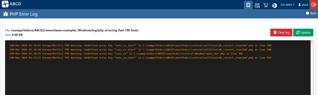 Diagnosing problems in shared hosting (like cPanel) or restricted servers has become easier. The new viewer allows reading the PHP error log directly through ABCD.