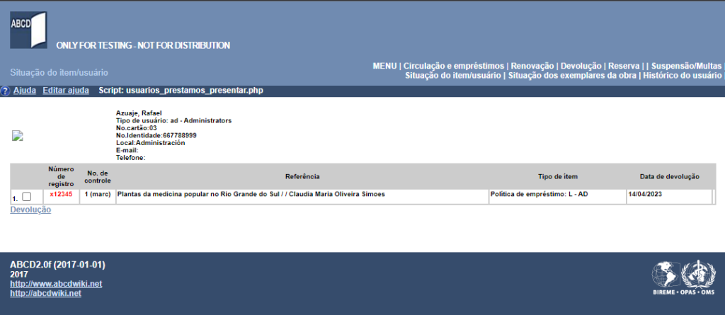 Outro problema que podemos considerar grave é que enquanto o empréstimo estava ativo, o ABCD seguia as regras do arquivo typeofitems.tab, ou seja, se durante o empréstimo este arquivo fosse alterado as regras de empréstimo ativo também seria. Uma ação não muito correta com quem pegou um livro emprestado baseado em uma política que poderia ser alterada a qualquer momento.