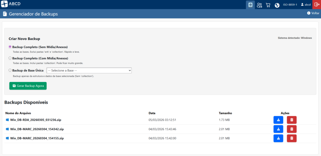 - Bases + Mídia: Backup completo incluindo a pasta