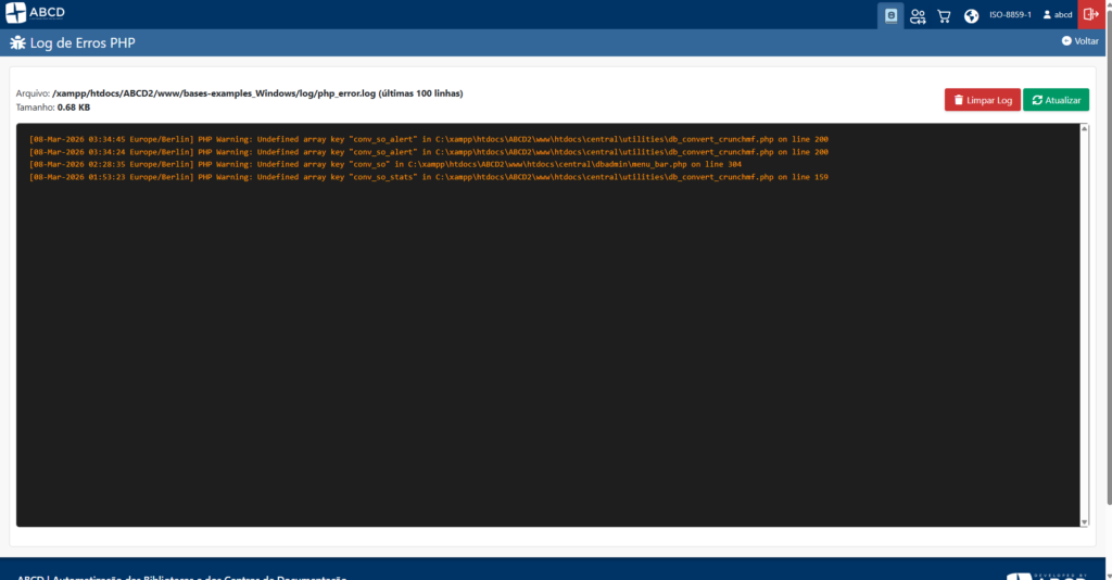 Diagnosticar problemas em hospedagens compartilhadas (como cPanel) ou servidores restritos ficou mais fácil. O novo visualizador permite ler o log de erros do PHP diretamente pelo ABCD.